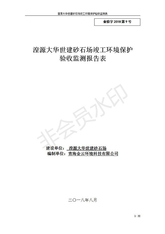 湟源大華世建砂石場(chǎng)建設(shè)項(xiàng)目竣工環(huán)境保護(hù)驗(yàn)收發(fā)布日期:(2018-9-6) 點(diǎn)擊次數(shù):2330 |