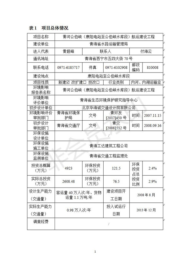 黃河公伯峽(康楊電站至公伯峽水庫(kù)段)航運(yùn)建設(shè)工程竣工環(huán)境保護(hù)驗(yàn)收調(diào)查報(bào)告表公示發(fā)布日期:(2018-11-16) 點(diǎn)擊次數(shù):2504 |