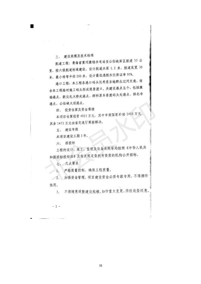 黃河公伯峽(康楊電站至公伯峽水庫(kù)段)航運(yùn)建設(shè)工程