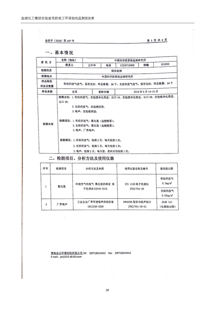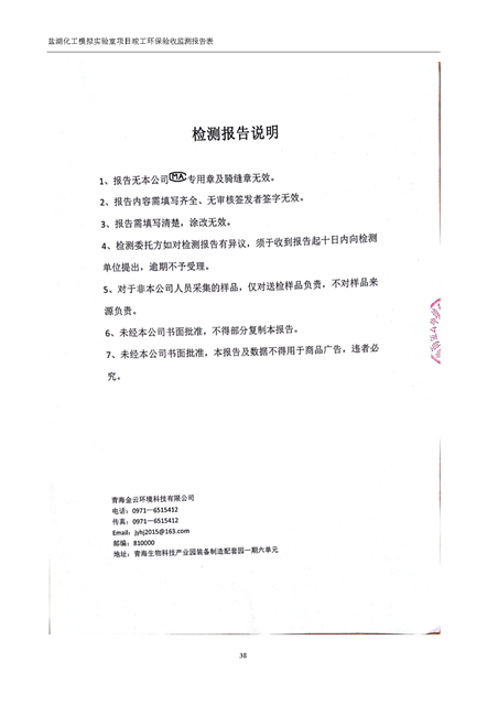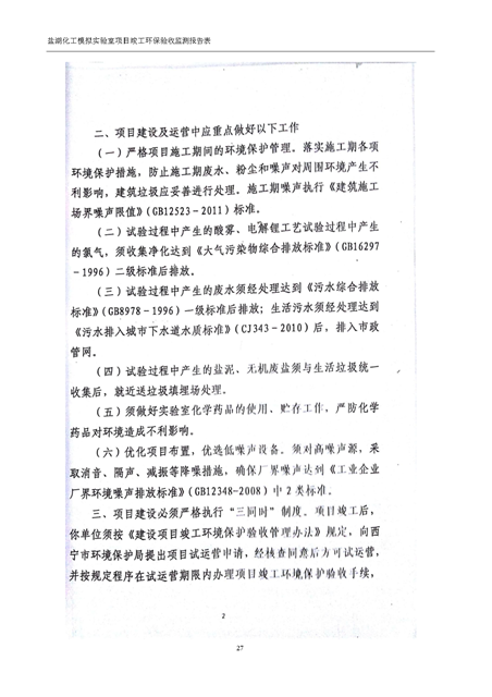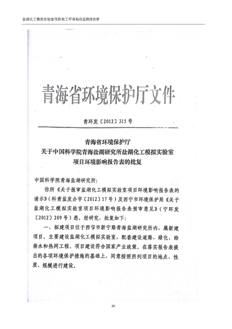 中國科學(xué)院青海鹽湖研究所鹽湖化工模擬實驗室項目竣工環(huán)境保護驗收監(jiān)測報告表公示發(fā)布日期:(2018-11-23) 點擊次數(shù):2223 |