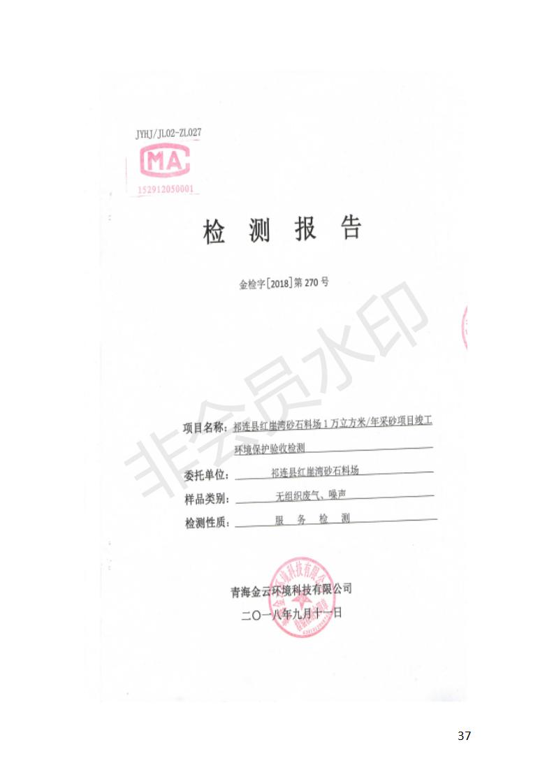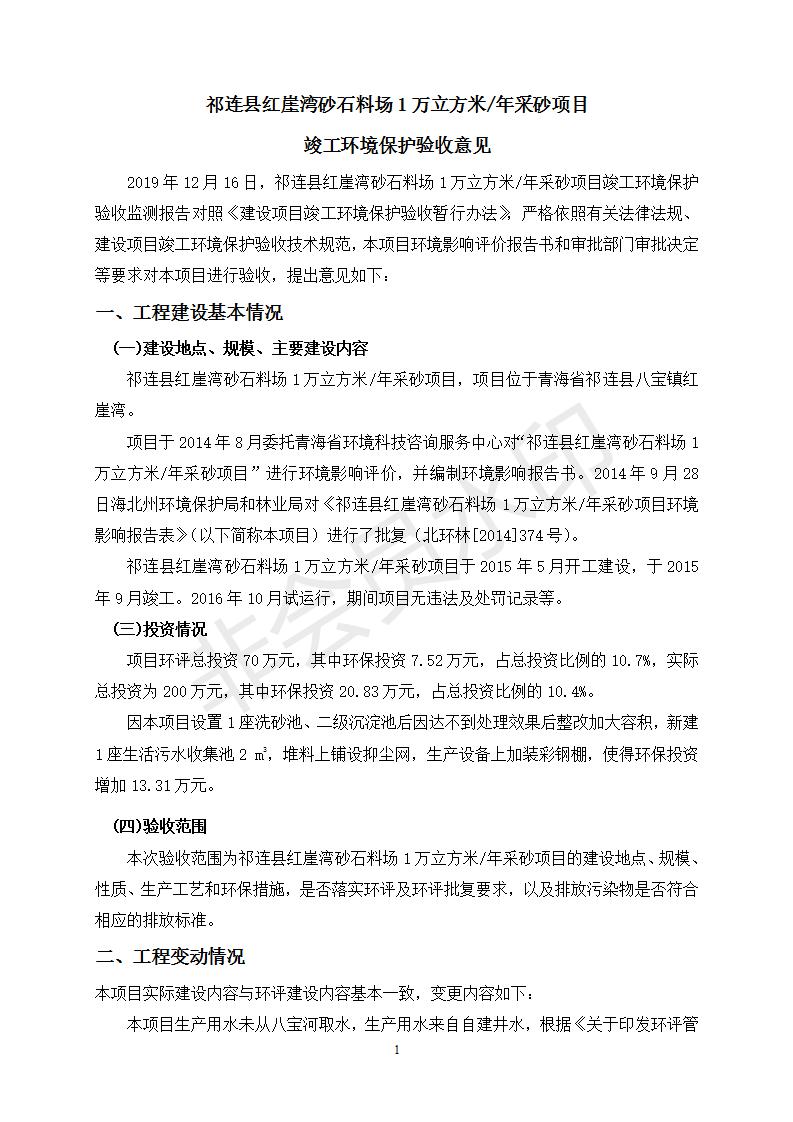 祁連縣紅崖灣砂石料場1萬立方米/年采砂項(xiàng)目竣工環(huán)境保護(hù)驗(yàn)收監(jiān)測報(bào)告表公示
