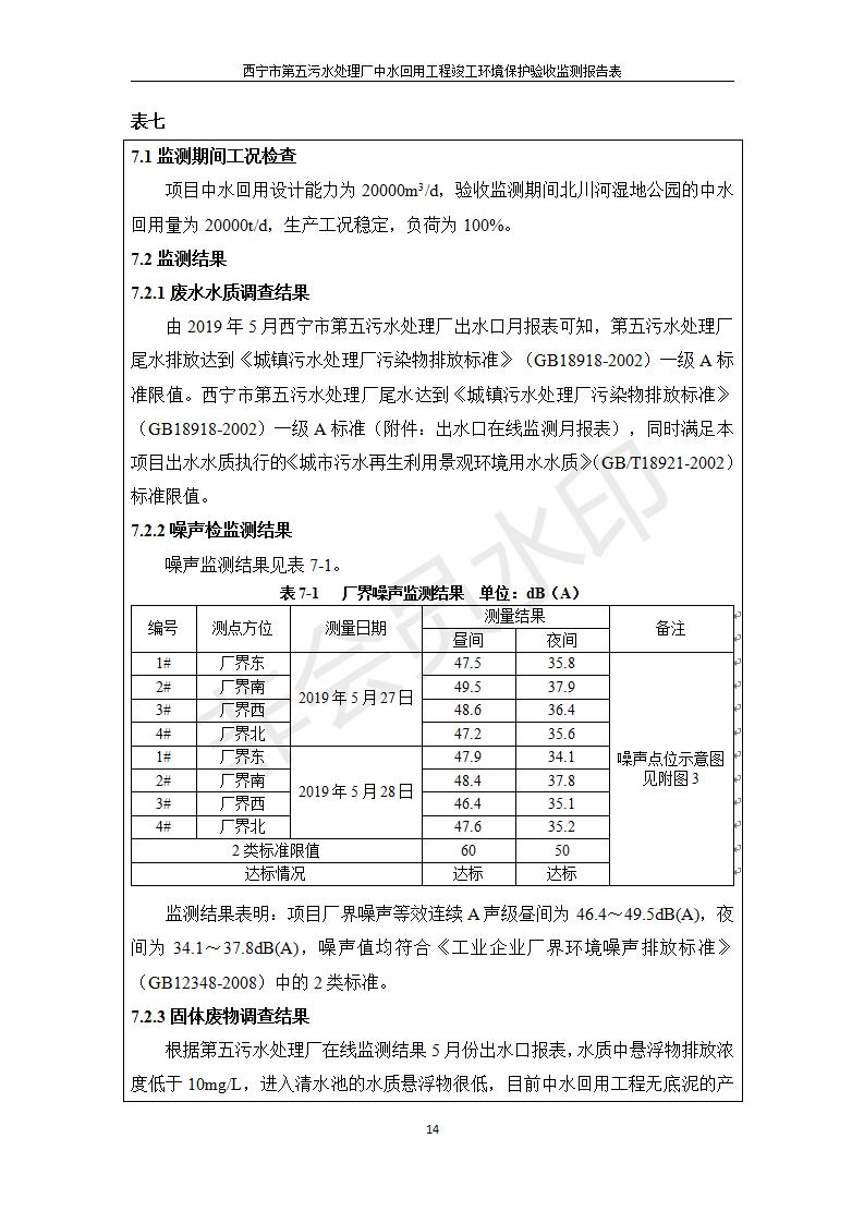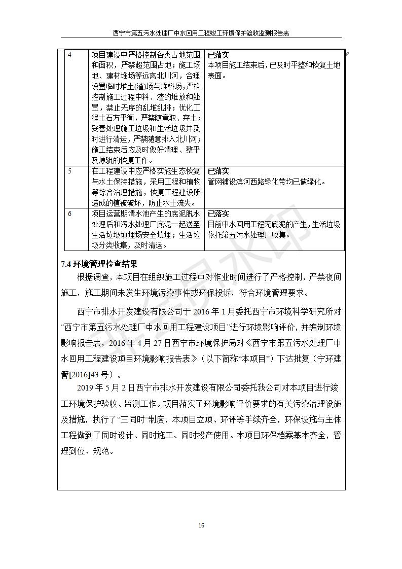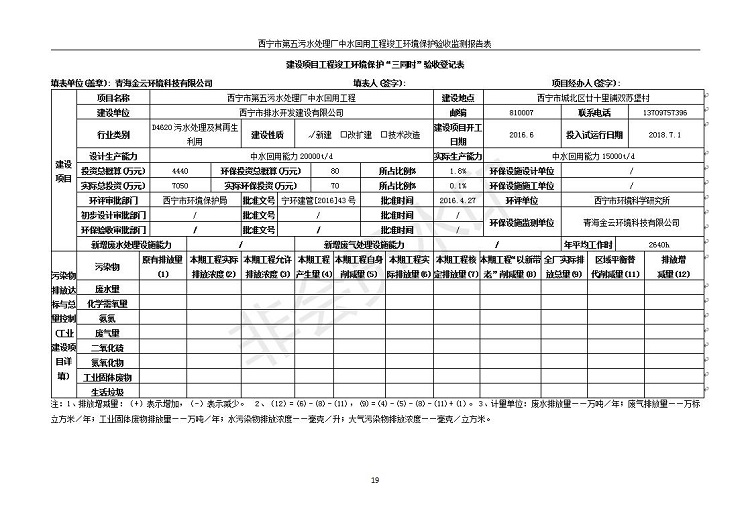 西寧市第五污水處理廠中水回用工程建設項目竣工環(huán)境保護驗收監(jiān)測報告表公示發(fā)布日期:(2019-7-10) 點擊次數:2396 |