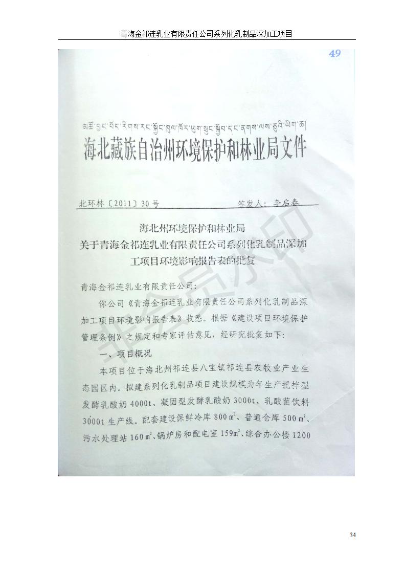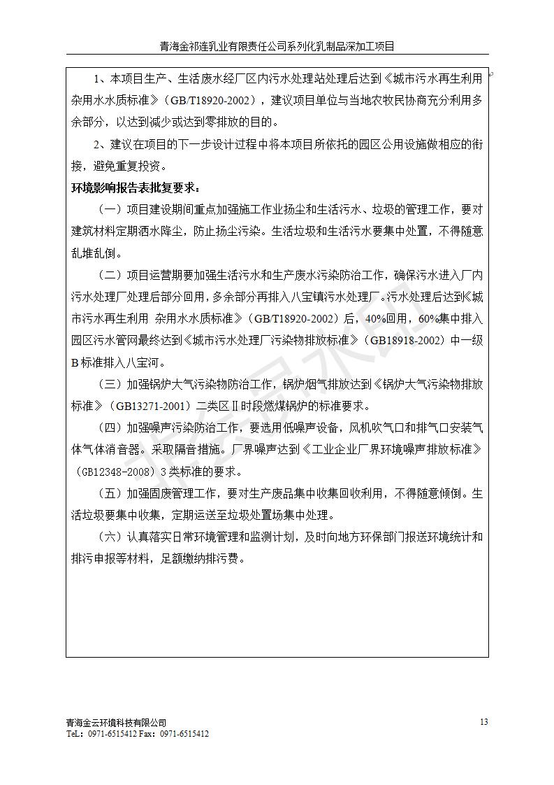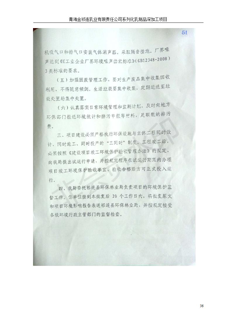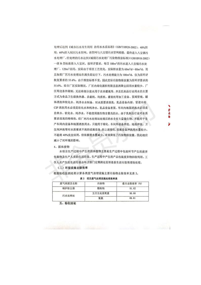 根據(jù)中華人民共和國國務院令第682號《國務院關于修改〈建設項目環(huán)境保護管理條例〉的決定》和《建設項目竣工環(huán)境保護驗收暫行辦法》(國務院令682號),青海金祁連乳業(yè)有限責任公司系列化乳制品深加工項目(包括竣工環(huán)境保護驗收監(jiān)測報告表和驗收意見)公示如下。 一、項目名稱:青海金祁連乳業(yè)有限責任公司系列化乳制品深加工項目 二、地點:海北藏族自治州祁連縣冰溝農牧產業(yè)化生態(tài)園區(qū) 三、建設單位:青海金祁連乳業(yè)有限責任公司 四、建設內容:本項目新征工業(yè)用地40畝,新建生產車間2200 m2、采用多聯(lián)跨鋼結構廠房,跨度為24米,長度為80米,柱間距為6米,標高為4.8米。廠房內部根據(jù)產品生產工藝及工序要求分為不同的工作區(qū)域和車間辦公室。建設有保鮮冷庫800 m2、普通倉庫500m2、污水處理站房160 m2、鍋爐房和配電室159 m2、綜合辦公樓1200 m2、職工食堂和宿舍500 m2、其他輔助用房35 m2、蓄水池100 m2以及與土建工程相關聯(lián)的水、電、熱官網等輔助設施。 五、聯(lián)系人:張工 六、聯(lián)系電 話:0971-6515411 七、公示時間:二〇一九年七月十日至二〇一九年八月六日 公示期間,對上述公示內容如有異議,請以書面形式反饋,個人須署真實姓名,單位須加蓋公章。