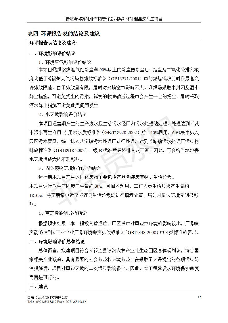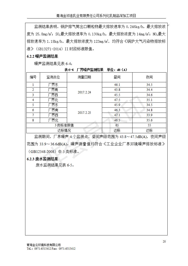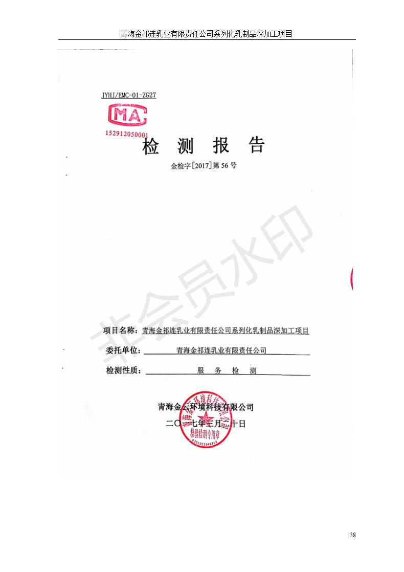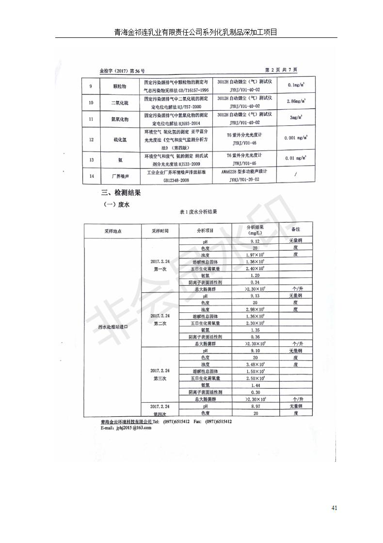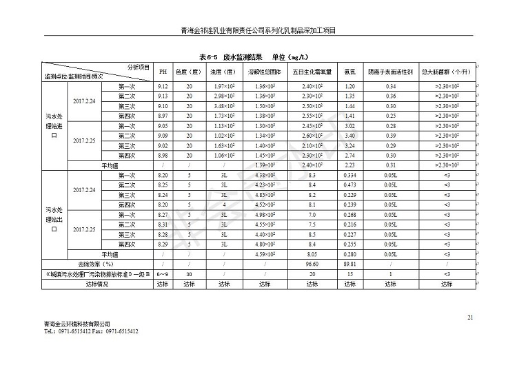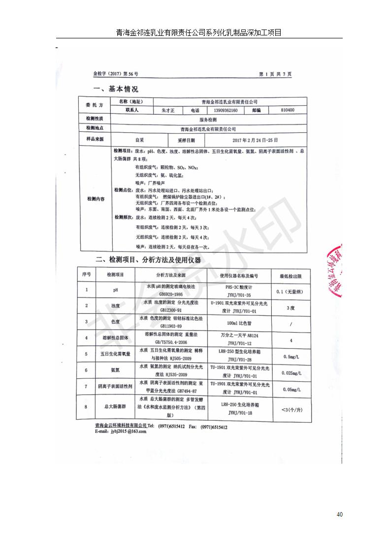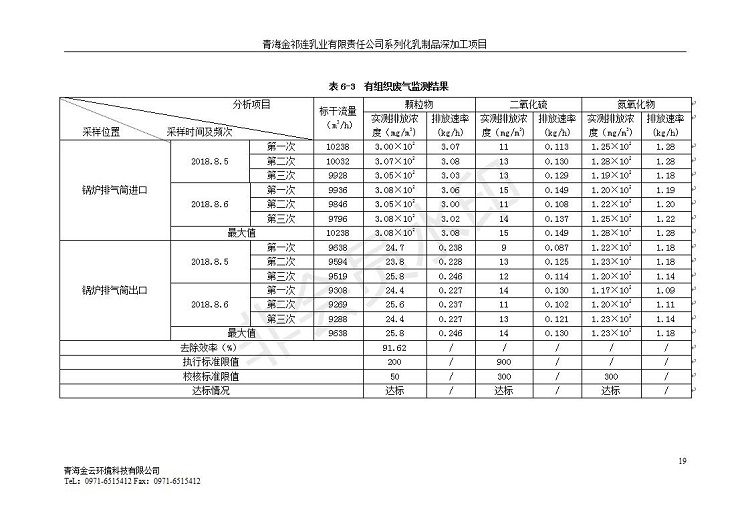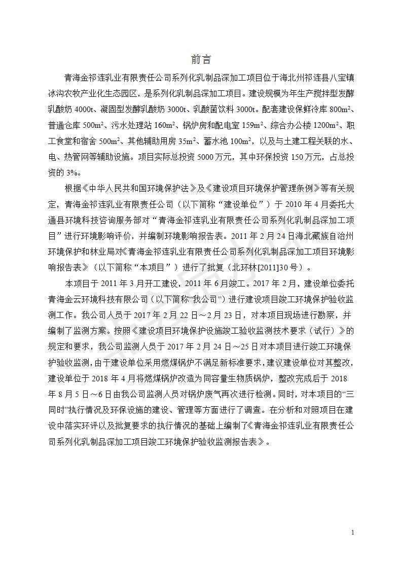 青海金祁連乳業(yè)有限責任公司系列化乳制品深加工項目竣工環(huán)境保護驗收監(jiān)測報告表公示發(fā)布日期:(2019-7-10) 點擊次數(shù):2263 |