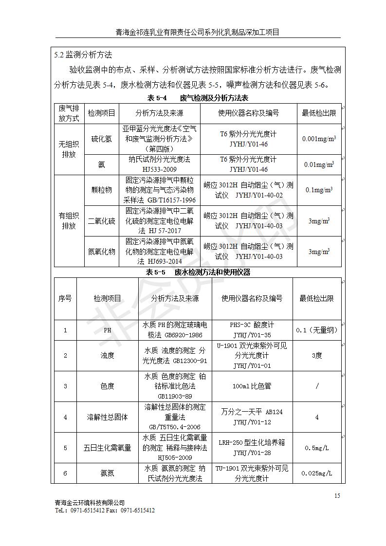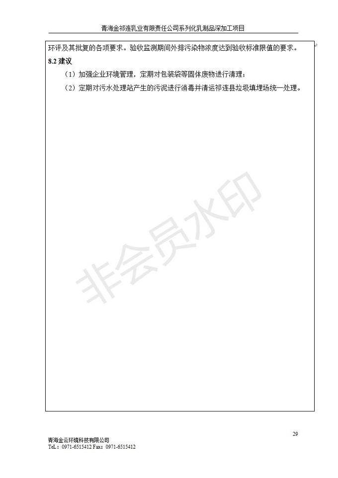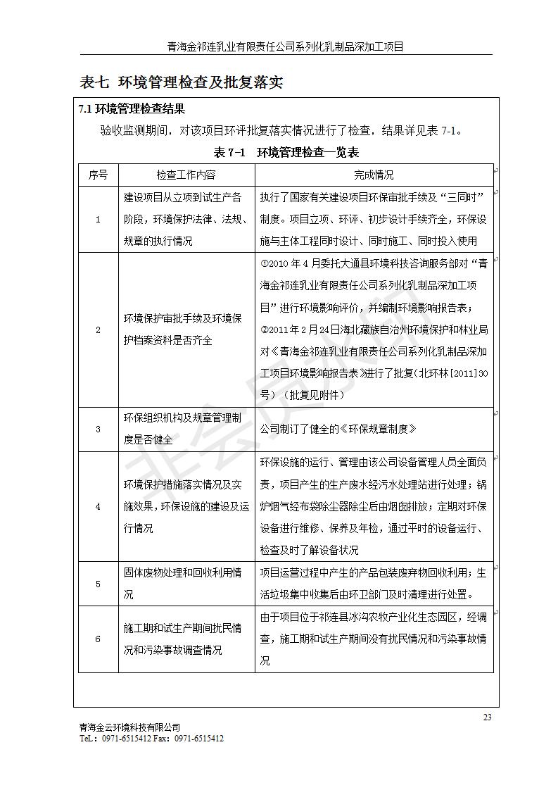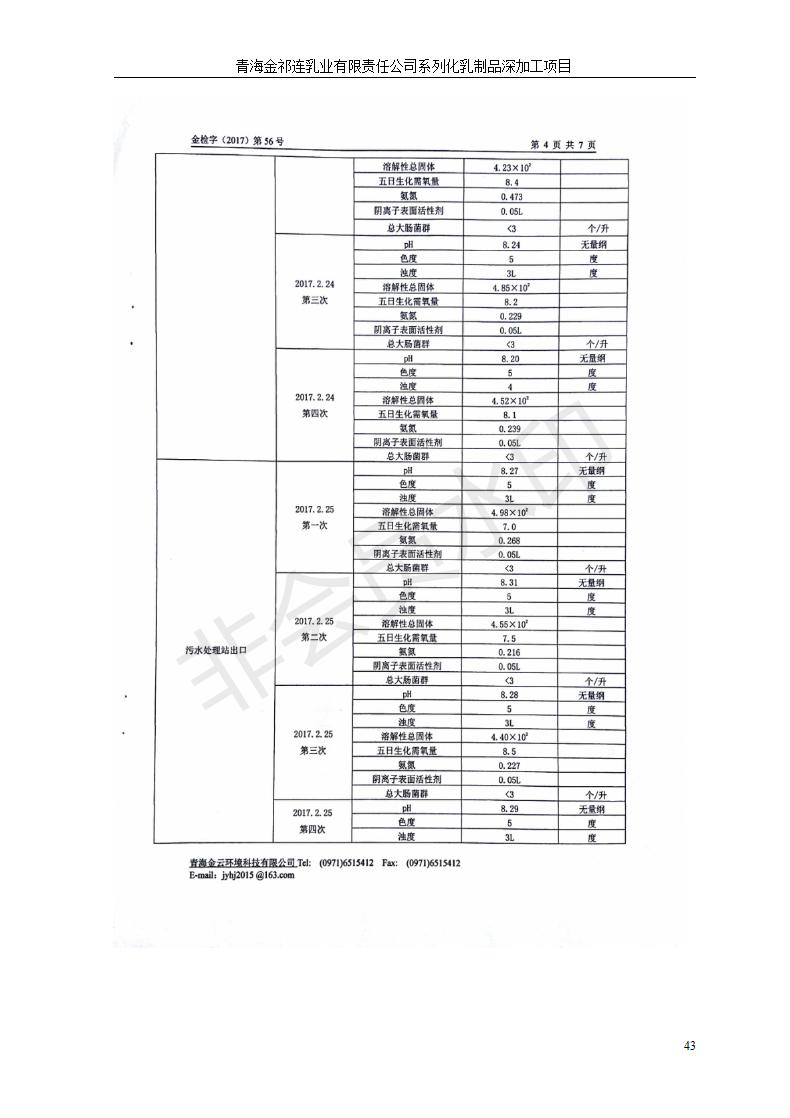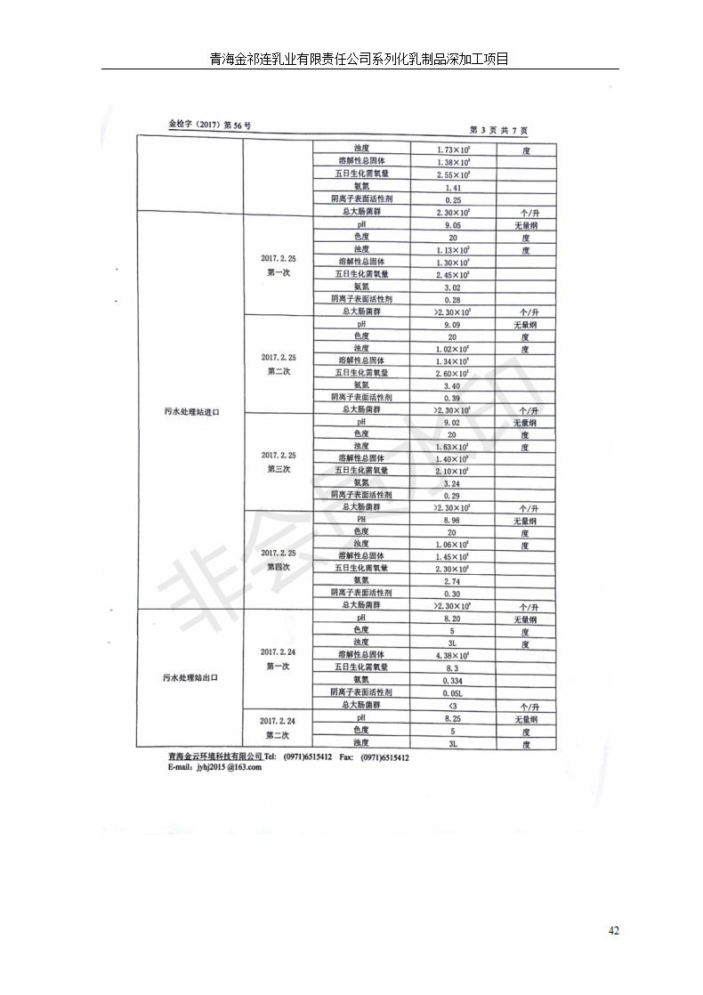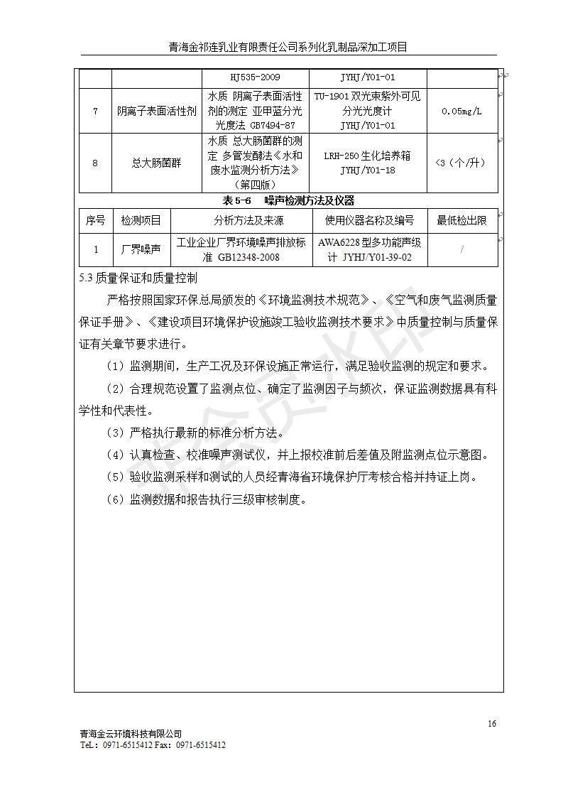 青海金祁連乳業(yè)有限責任公司系列化乳制品深加工項目竣工環(huán)境保護驗收監(jiān)測報告表公示發(fā)布日期:(2019-7-10) 點擊次數(shù):2263 |