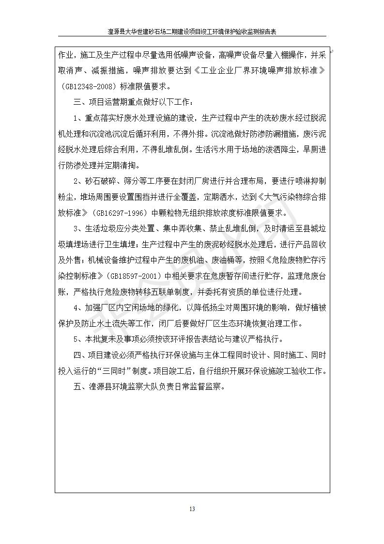 湟源大華世建砂石場湟源縣大華世建砂石場二期建設(shè)項(xiàng)目工環(huán)境保護(hù)驗(yàn)收監(jiān)測報(bào)告表公示發(fā)布日期:(2019-7-25) 點(diǎn)擊次數(shù):2450 |