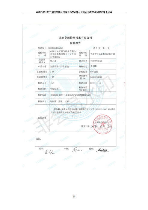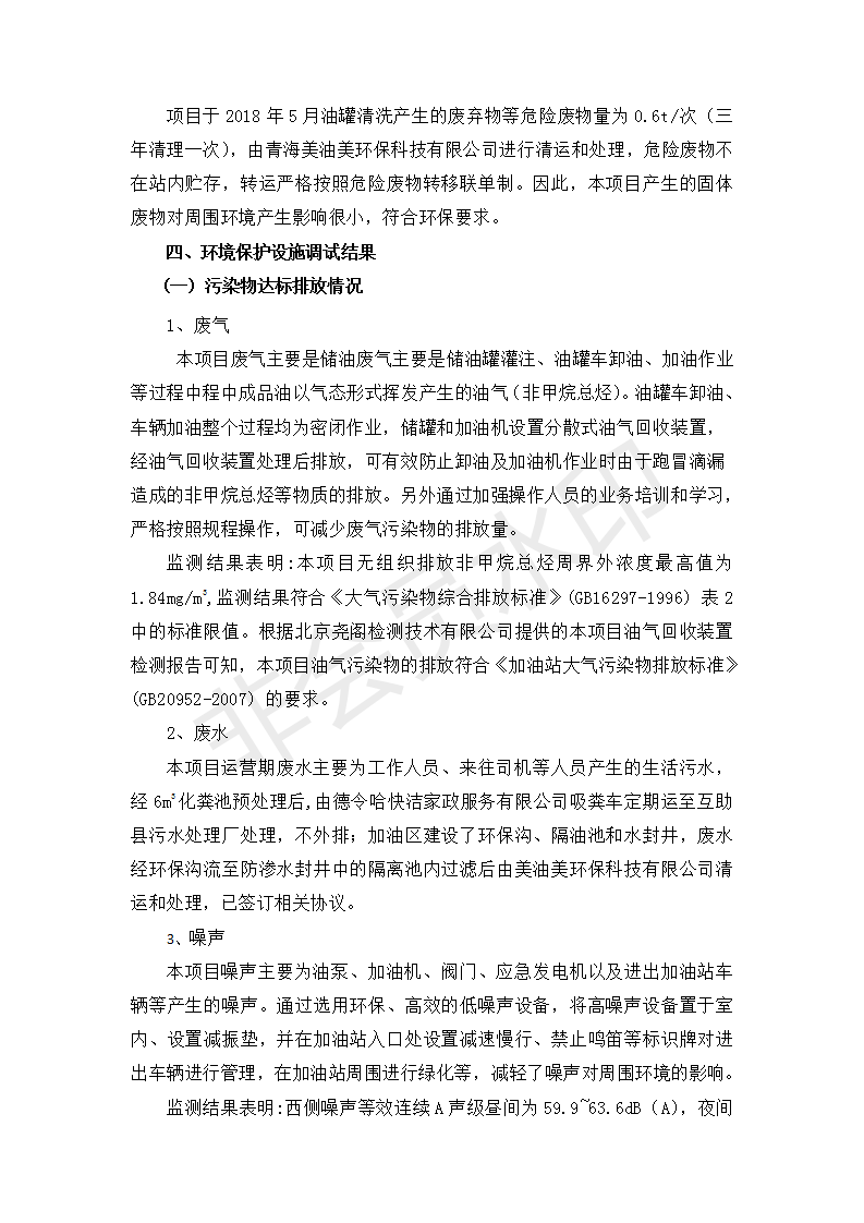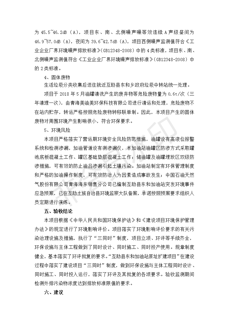 互助縣東和加油站原址擴(kuò)建項目 竣工環(huán)境保護(hù)驗收監(jiān)測報告表公示發(fā)布日期:(2019-9-27) 點擊次數(shù):2468 |