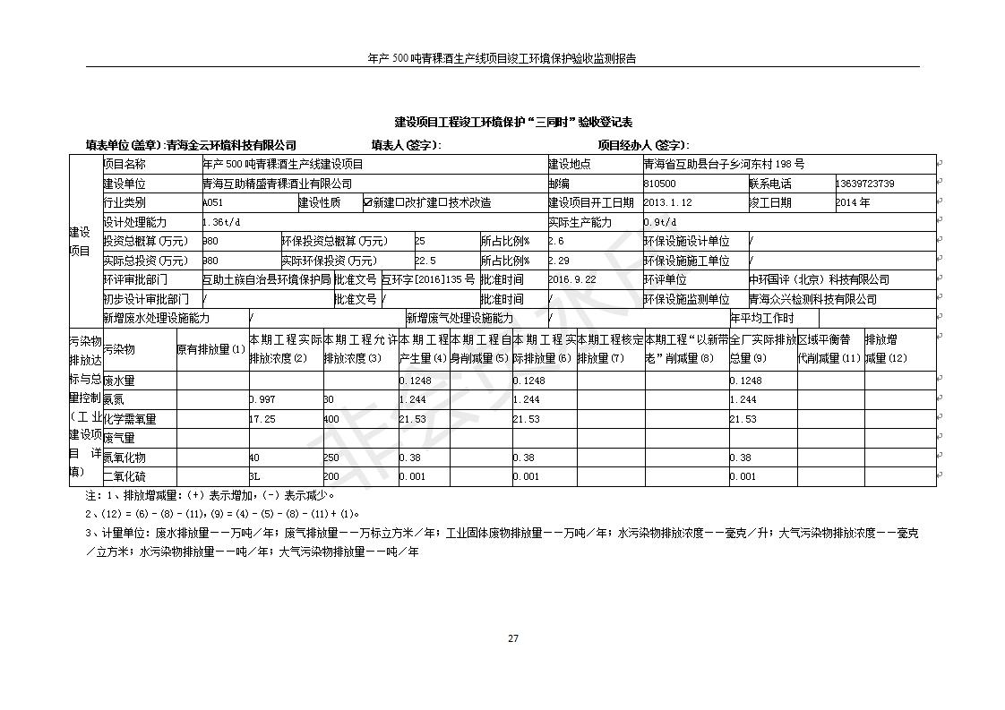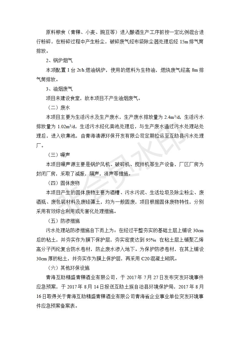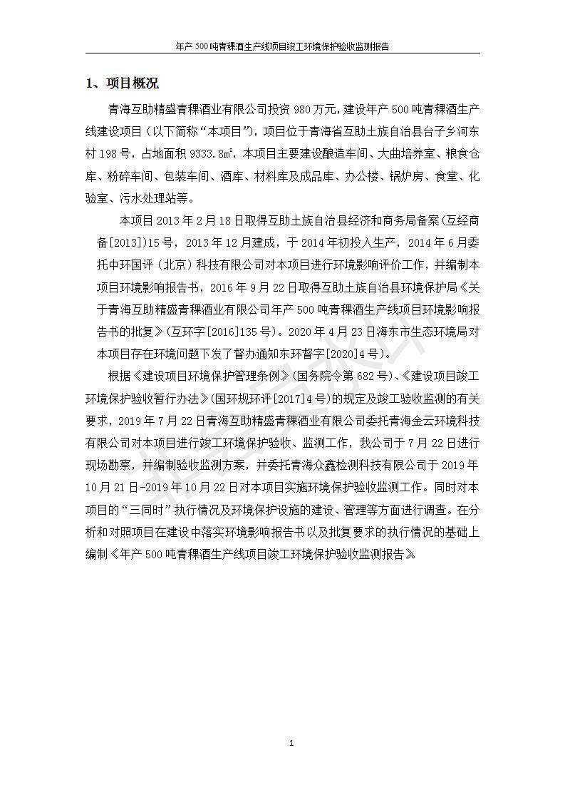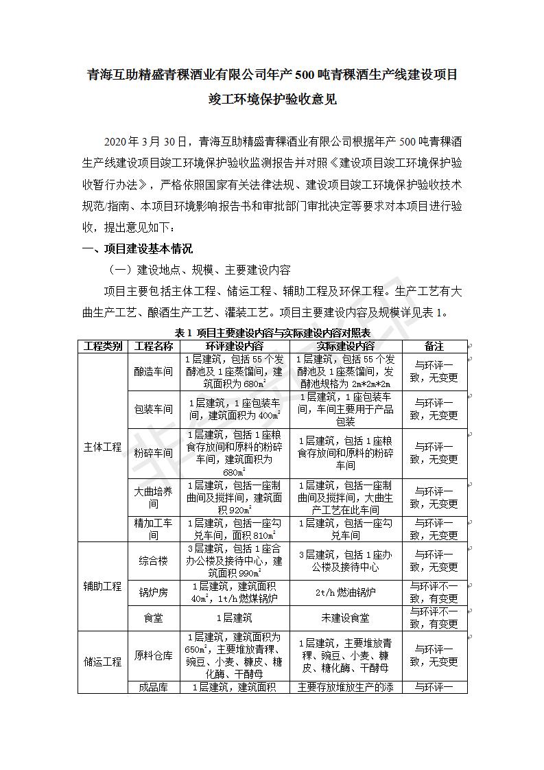 根據(jù)中華人民共和國(guó)國(guó)務(wù)院令第682號(hào)《國(guó)務(wù)院關(guān)于修改〈建設(shè)項(xiàng)目環(huán)境保護(hù)管理?xiàng)l例〉的決定》和《建設(shè)項(xiàng)目竣工環(huán)境保護(hù)驗(yàn)收暫行辦法》(國(guó)務(wù)院令682號(hào)),綜合檢測(cè)實(shí)驗(yàn)室建設(shè)項(xiàng)目(包括竣工環(huán)境保護(hù)驗(yàn)收監(jiān)測(cè)報(bào)告表和驗(yàn)收意見(jiàn))公示如下。 一、項(xiàng)目名稱:青;ブ⑶囡茦I(yè)有限公司年產(chǎn)500噸青稞酒業(yè)生產(chǎn)線建設(shè)項(xiàng)目 二、地點(diǎn):青海省海東市互助土族自治縣臺(tái)子鄉(xiāng)河?xùn)|村198號(hào)