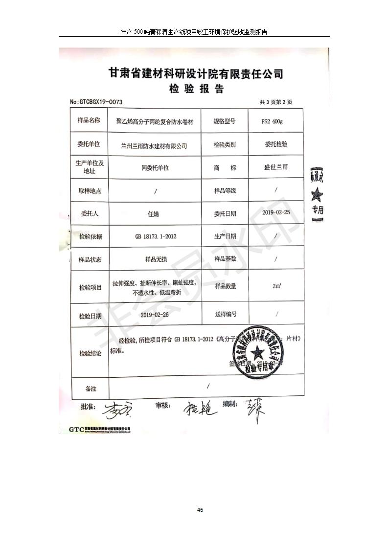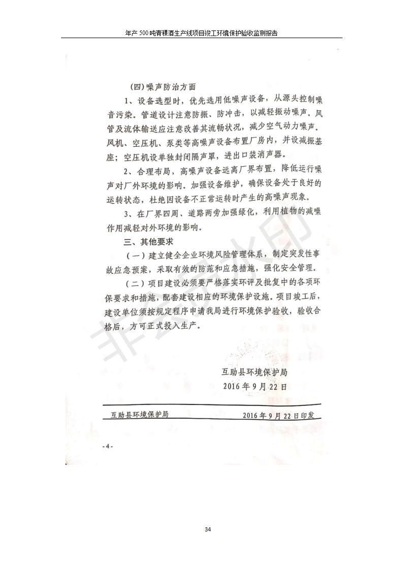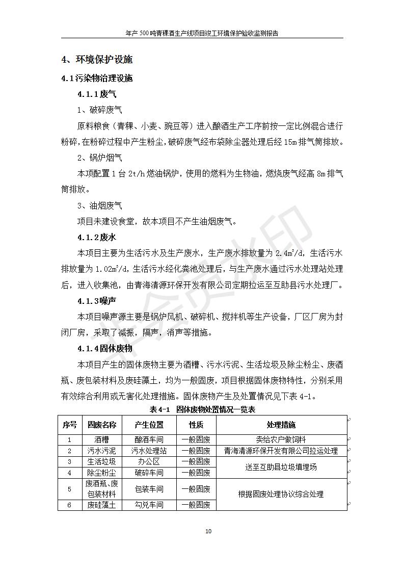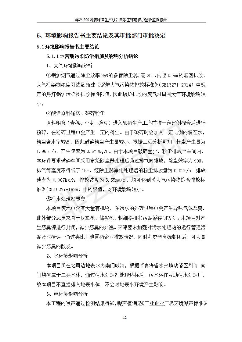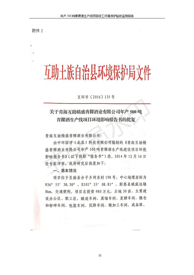 根據(jù)中華人民共和國(guó)國(guó)務(wù)院令第682號(hào)《國(guó)務(wù)院關(guān)于修改〈建設(shè)項(xiàng)目環(huán)境保護(hù)管理?xiàng)l例〉的決定》和《建設(shè)項(xiàng)目竣工環(huán)境保護(hù)驗(yàn)收暫行辦法》(國(guó)務(wù)院令682號(hào)),綜合檢測(cè)實(shí)驗(yàn)室建設(shè)項(xiàng)目(包括竣工環(huán)境保護(hù)驗(yàn)收監(jiān)測(cè)報(bào)告表和驗(yàn)收意見(jiàn))公示如下。 一、項(xiàng)目名稱:青;ブ⑶囡茦I(yè)有限公司年產(chǎn)500噸青稞酒業(yè)生產(chǎn)線建設(shè)項(xiàng)目 二、地點(diǎn):青海省海東市互助土族自治縣臺(tái)子鄉(xiāng)河?xùn)|村198號(hào)